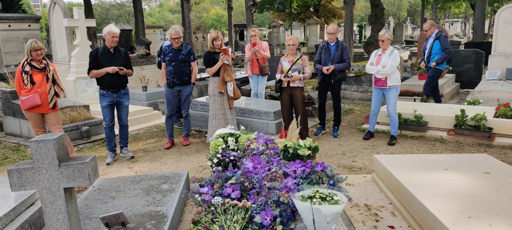 Tijdens de inspiratiereis Parijs -van Napoleon tot Juliette Grèco- wandelen we uitgebreid over de begraafplaatsen van Père-Lachaise en Montparnasse. Telkens staan we stil bij recente begrafenissen, zoals die van modekoning Karl Lagerfeld, rocker Johnny Hallyday, zangeres Juliette Grèco of acteur Jean-Paul Belmondo (op de foto). Belmondo werd overigens gecremeerd op Père-Lachaise en vervolgens bijgezet op Montparnasse, naast zijn vader, beeldhouwer Paul Belmondo.